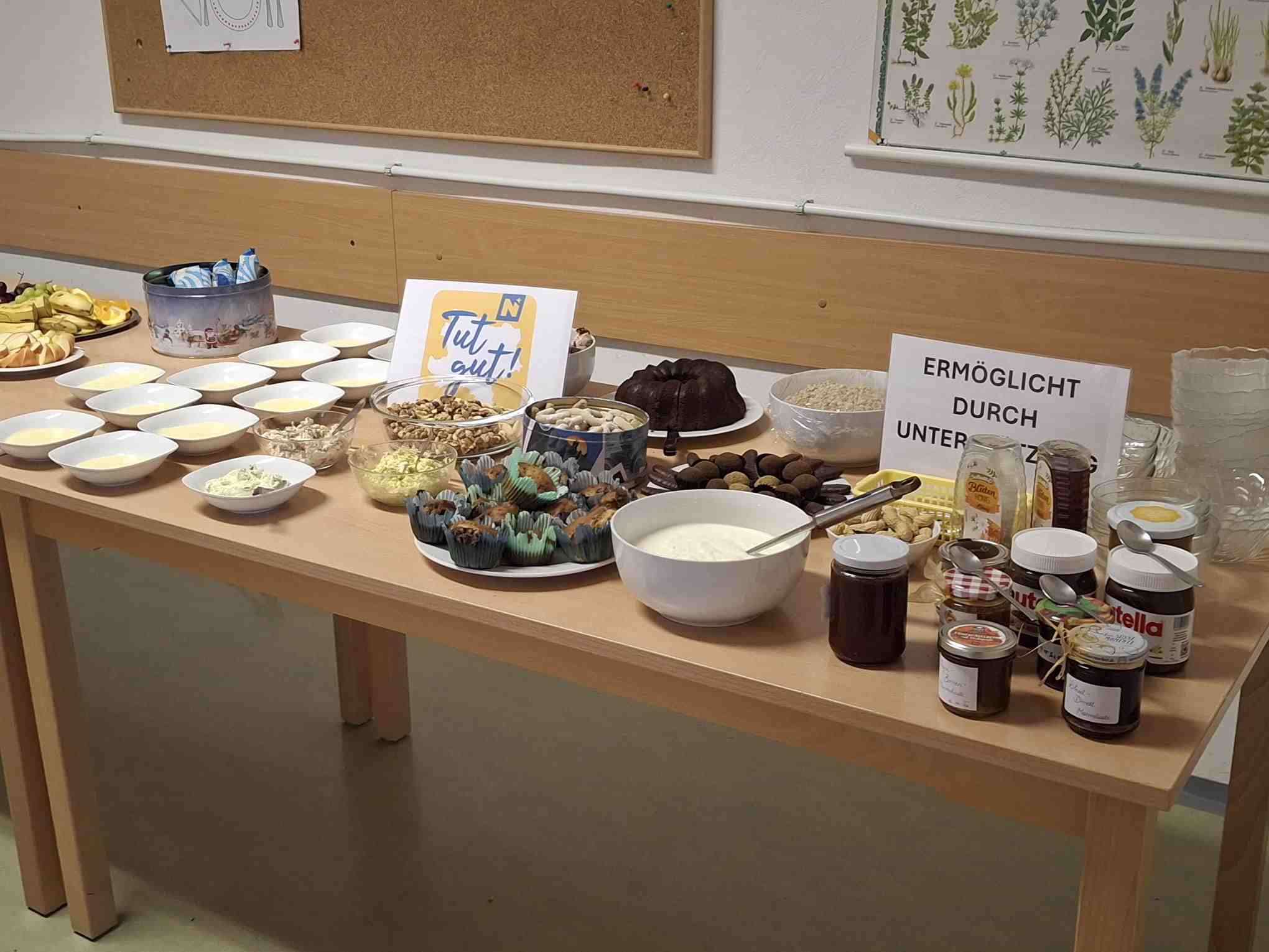 Für eine Stärkung zwischendurch sorgte an beiden Tagen eine von Schüler*innen der vierten Klassen vorbereitete Weihnachtsjause (Kerstin Dorfstätter und Barbara Auer-Rottensteiner) – am Montag in Buffetform, am Dienstag in kleinerer Ausführung zur sinnvollen und nachhaltigen Verwertung verbliebener Lebensmittel.
